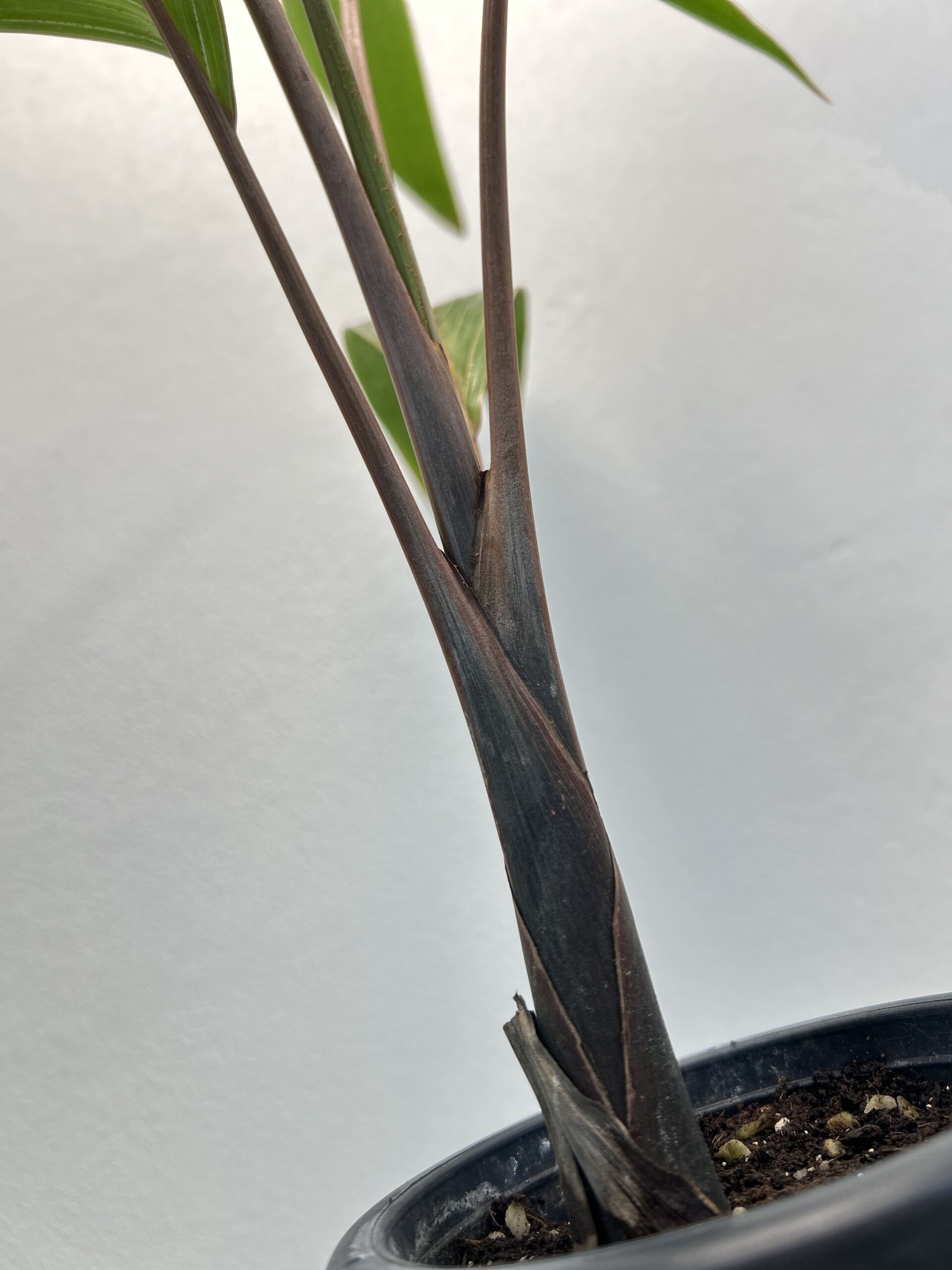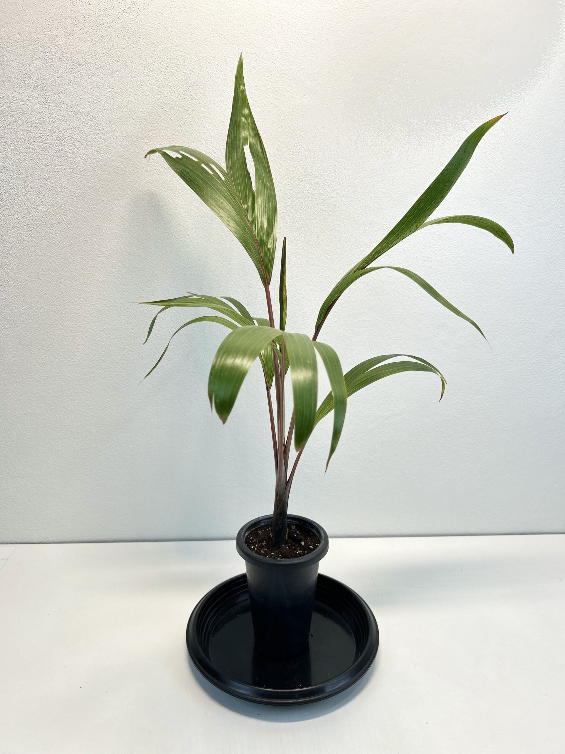 Bottle palm has a large swollen trunk. It is a myth that the trunk is a means by which the palm stores water. Bottle palms have only four to six leaves open at any time. The leaves of young palms have a red or orange tint, but a deep green is assumed at maturity. The flowers of the palm arise from under the crownshaft.